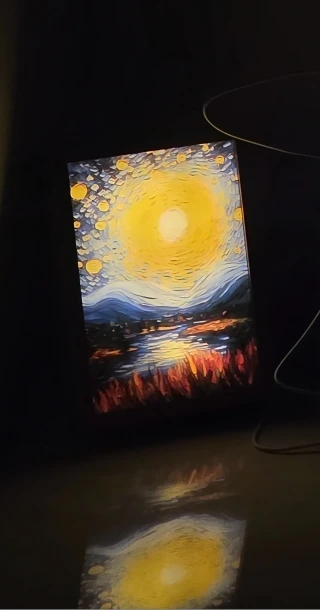 Convierte cualquier cuarto aburrido en un espacio elegante, cálido y lleno de arte. Nuestro cuadro lámpara, inspirado en los icónicos trazos de Vincent van Gogh, está diseñado para transformar tu ambiente desde el primer instante: ilumina, decora y añade esa chispa artística que siempre destaca.